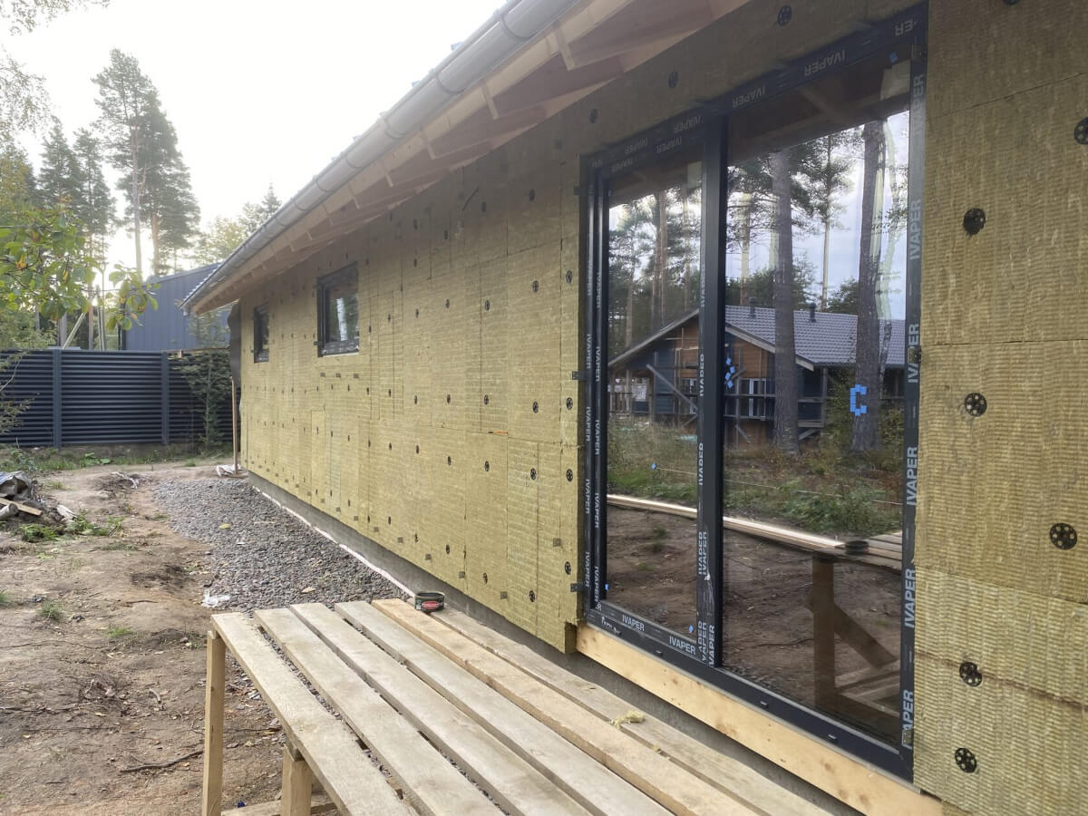 Для утепления CLT–панелей используются утеплители базальтовой группы высокой плотности, как в случае утепления многоквартирных домов. Они крепятся с помощью специального крепления, затем закрываются ветрозащитной пленкой.