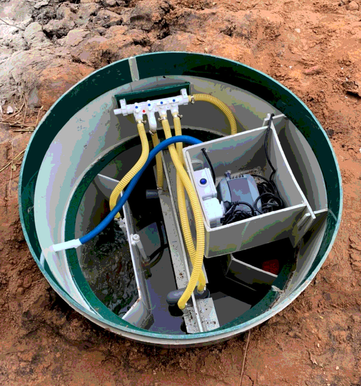 Станция биоочистки подбирается в зависимости от типа эксплуатации дома и количества жильцов. Комбинируем сброс технической воды с дренажным колодцем, дабы дополнительно избежать неприятных запахов и обеспечить круглогодичную безаварийную эксплуатацию.